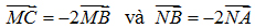 1) Cho tam giác ABC có AB = c, AC = b và Các điểm M, N được xác định bởi