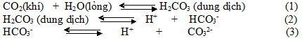 2/ Khí CO2 tan trong nước tạo thành dung dịch axit cacbonic, khi đó tồn tại các cân bằng:
