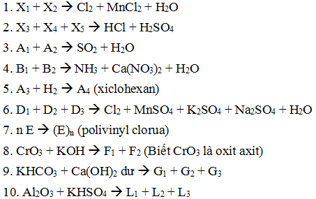 1. Cho CO tác dụng với CuO đun nóng được hỗn hợp chất rắn A và khí B. Hòa tan hoàn toàn A vào H2SO4 đặc, nóng; cho B tác dụng với dung dịch nước vôi trong dư. Viết phương trình phản ứng.