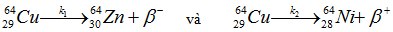 Từ một lượng đồng vị 64Cu ban đầu, sau 29 giờ 44 phút lấy hỗn hợp còn lại hòa tan vào dung dịch KOH dư thì phần chất rắn không tan có khối lượng bằng 50,4% khối lượng hỗn hợp .