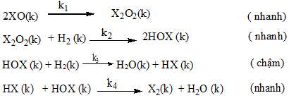 2. Phản ứng 2XO(k) + 2H2(k) -> X2(k) + 2H2O(k) tuân theo quy luật động học thực nghiệm: v = k[XO]2 [H2]. Cơ chế được đề xuất cho phản ứng này:
