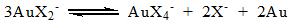 Au3+ tạo phức AuX4- (hằng số không bền K2), dư ion X- có cân bằng sau: