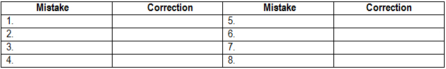 V. There is one mistake in each of the following sentences. Find and correct it. (8 marks)