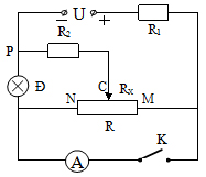 a. Khi khóa K đóng, con chạy C của biến trở ở vị trí điểm N, thì ampe kế chỉ 4A. Tìm giá trị của R2.