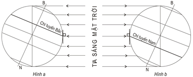 Vị trí của Trái Đất thuộc các ngày, tháng nào trong năm? Khu vực không có hiện tượng Mặt Trời lên thiên đỉnh? Giải thích nguyên nhân.