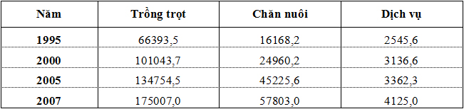 1. Vẽ biểu đồ miền thể hiện sự thay đổi cơ cấu giá trị sản xuất nông nghiệp phân theo ngành của nước ta giai đoạn 1995 - 2007.