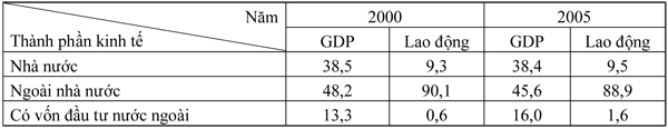 Bảng 1: Cơ cấu GDP và lao động phân theo thành phần kinh tế nước ta: