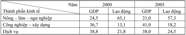 Bảng 2: Cơ cấu GDP và lao động có việc làm phân theo khu vực kinh tế nước ta: