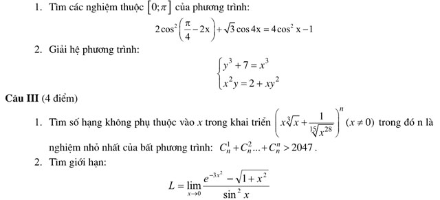 Câu II (4 điểm)