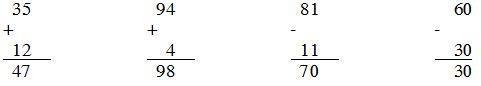 35 + 12 94 + 4 81 – 11 60 – 30