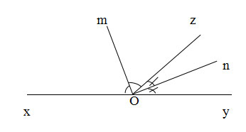 b. Vẽ Om, On lần lượt là tia phân giác của góc xOz và góc yOz. Chứng minh góc mOn = 900