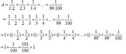 Vậy A > 1.