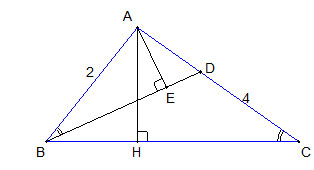 → AD = AB2/AC = 22/4 = 1 (cm)