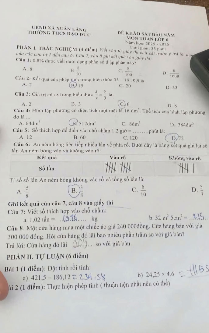 Đề thi Khảo sát chất lượng đầu năm Toán 6 trường THCS Đạo Đức 2025 -2026