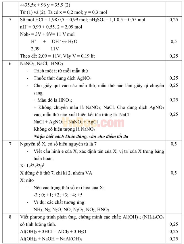 Câu 6: (1 điểm): Bằng phương pháp hóa học hãy nhận biết 3 lọ bị mất nhãn chứa riêng biệt các dung dịch sau: NaNO3; NaCl; HNO3