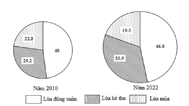 A. Lúa đông xuân và lúa hè thu có tỉ trọng tăng nhanh.