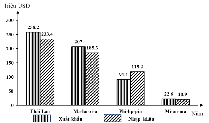 d) Thái Lan, Ma-lai-xi-a và Mi-an-ma là nước xuất siêu.