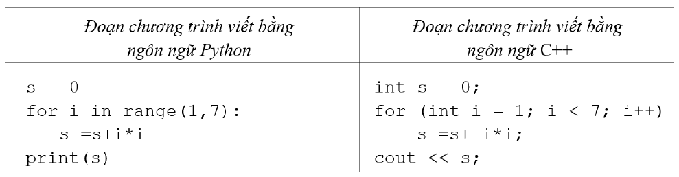 Câu 14: Chọn một trong hai ngôn ngữ Python hoặc C++ để xem xét đoạn chương trình