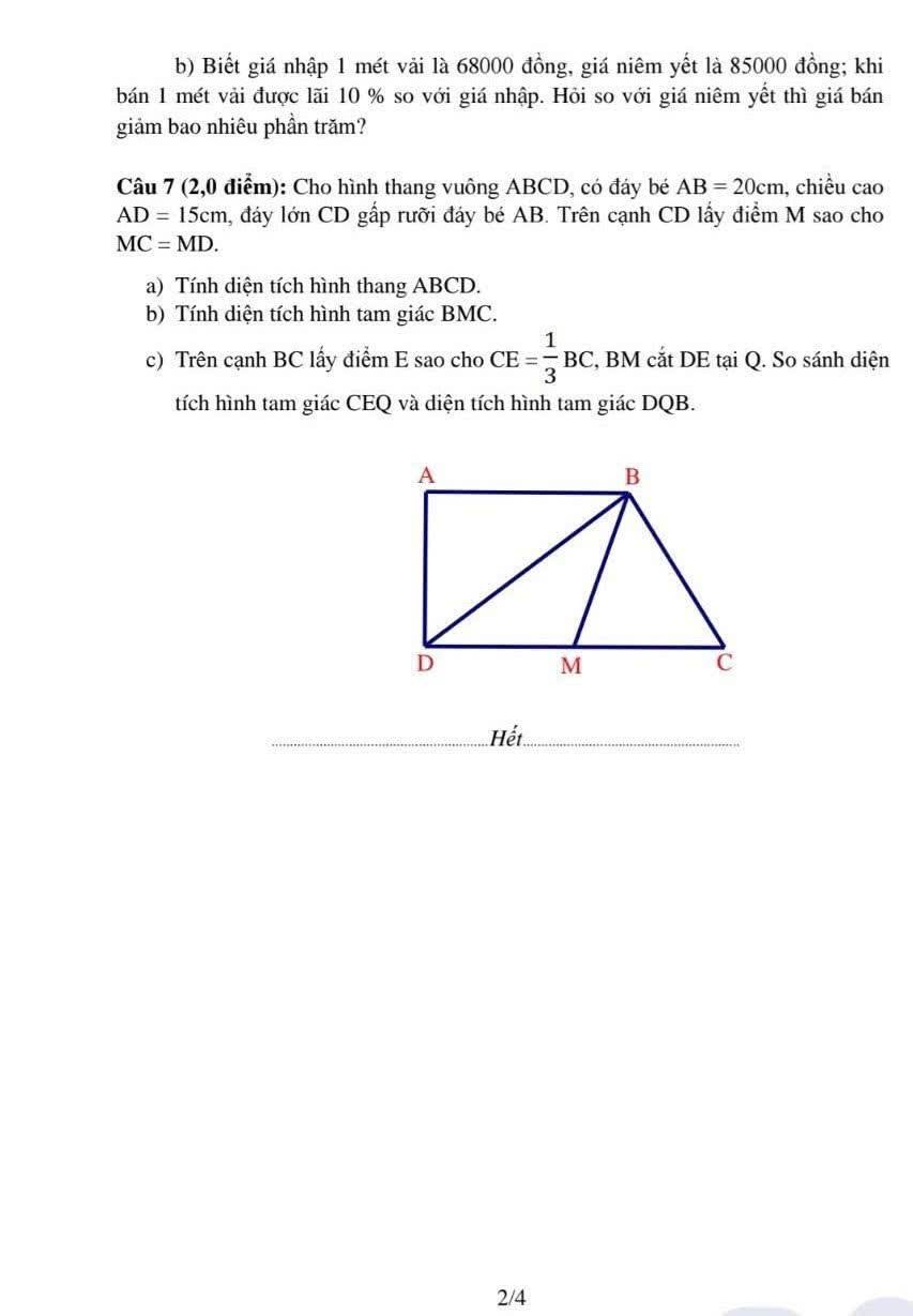Đề thi kiểm tra đánh giá năng lực Toán 6