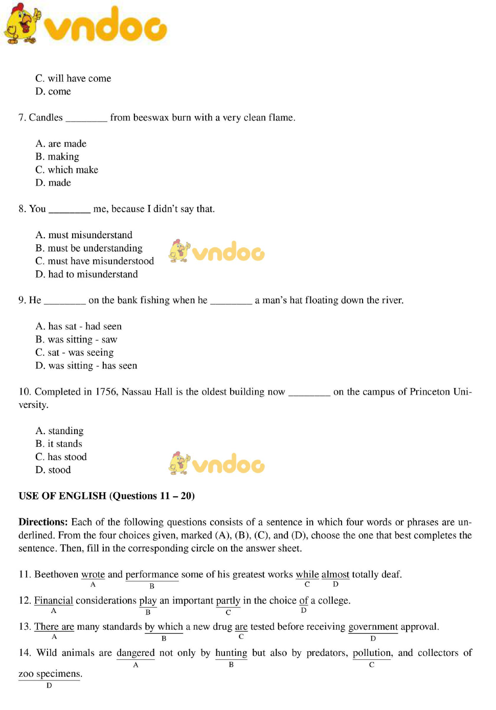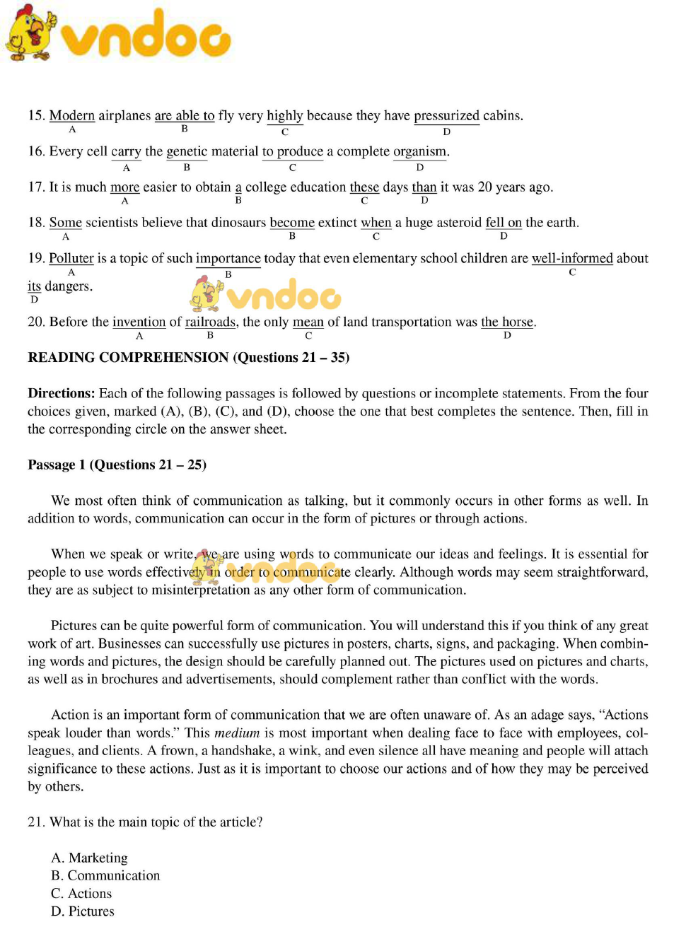 Hiện tại VnDoc.com chưa cập nhật được đáp án, mời bạn đọc tải trọn bộ nội dung đề thi tại: Đề thi mẫu đánh giá năng lực môn Tiếng Anh năm 2019 trường Đại học Quốc tế Hồng Bàng. Mời bạn đọc tham khảo thêm nhiều tài liệu ôn thi THPT Quốc Gia năm 2019 các môn học khác như: Thi thpt Quốc gia môn Tiếng Anh 2019, Thi thpt Quốc gia môn Toán 2019, Thi thpt Quốc gia môn Văn 2019 ,.... được cập nhật liên tục trên VnDoc.com.