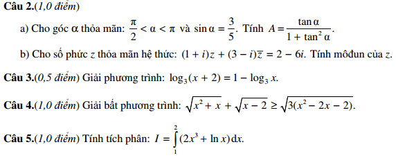 Đề thi minh họa môn Toán lần 3 năm 2017