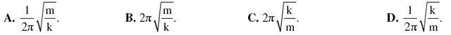 Câu 2: Một con lắc lò xo gồm lò xo nhẹ có độ cứng k và vật nhỏ khối lượng m. Cho con lắc dao động điều hòa theo phương ngang. Chu kì dao động của con lắc là
