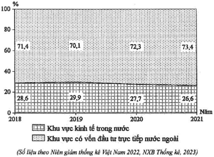 Cho biểu đồ về trị giá xuất khẩu hàng hóa phân theo khu vực kinh tế của nước ta giai đoạn 2018 – 2021: