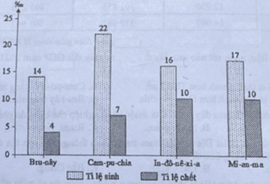 Theo bảng số liệu, nhận xét đúng khi so sánh tỉ suất gia tăng tự nhiên giữa các quốc gia là Mi-an-ma thấp hơn Bru-nây.