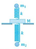Hai con lắc lò xo gồm các lò xo có cùng độ cứng k = 50,0 N/m, các vật nhỏ m1 và m2 có khối lượng lần lượt là 50,0 g và 200 g, được gắn vào giá M như hình dưới sao cho chúng chỉ có thể đao động điều hòa theo phương thẳng đứng.