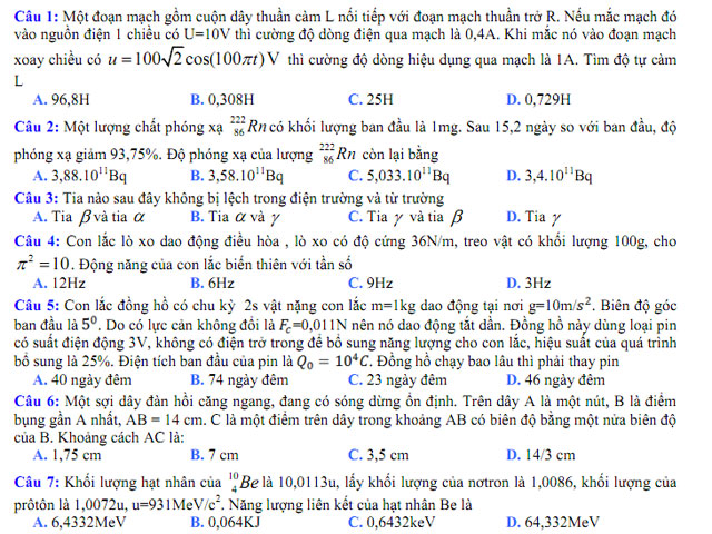 ĐỀ THI THỬ MÔN VẬT LÝ LẦN 1