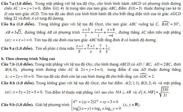 II. PHẦN RIÊNG (3,0 điểm) Thí sinh chỉ được làm một trong hai phần (phần a hoặc phần b)