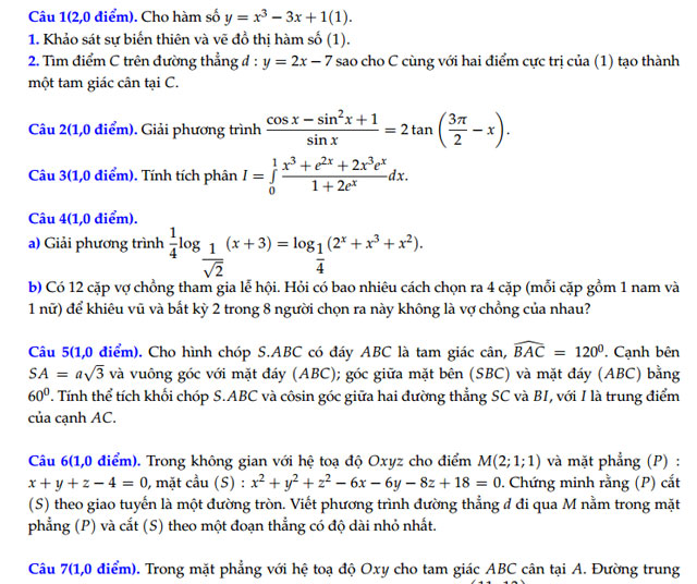 Thời gian làm bài: 180 phút, không kể thời gian phát đề