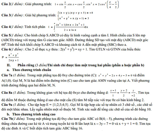 I. Phần chung cho tất cả thí sinh (7 điểm)