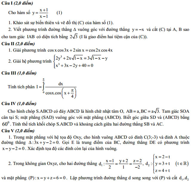 ĐỀ THI THỬ ĐẠI HỌC MÔN TOÁN
