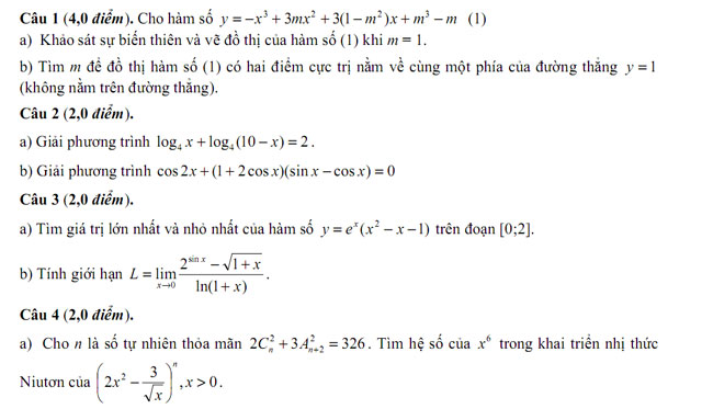 ĐỀ THI THỬ ĐẠI HỌC MÔN TOÁN NĂM 2015