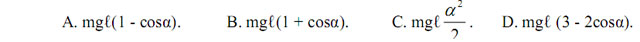 Câu 8: Một con lắc đơn gồm sợi dây có khối lượng không đáng kể, không dãn, có chiều dài ℓ và viên bi nhỏ có khối lượng m. Kích thích cho con lắc dao động ở nơi có gia tốc trọng trường g. Nếu chọn mốc thế năng tại vị trí cân bằng của viên bi thì thế năng của con lắc này ở li độ góc α có biểu thức là