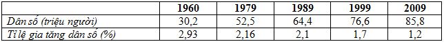 Dân số và tỉ lệ gia tăng dân số của nước ta giai đoạn 1960 – 2009