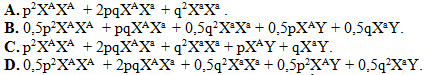 Câu 39: Xét một gen có 2 len A và a nằm trên NST giới tính X, không có alen tương ứng trên Y. Gọi p và q lần lượt là tần số tương đối của alen A và a, nếu tần số alen ở 2 giới bằng nhau thì cấu trúc di truyền của quần thể ở trạng thái cân bằng di truyền là biểu thức nào sau đây?