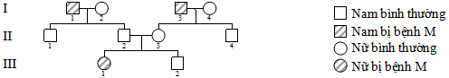 Câu 33. Khảo sát sự di truyền bệnh M ở người qua ba thế hệ như sau: