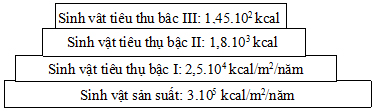 Câu 45: Hiệu suất sinh thái của bậc dinh dưỡng bậc III trong hình tháp sinh thái dưới đây là: