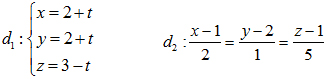 3) Cho hai đường thẳng d1 và d2 lần lượt có phương trình: