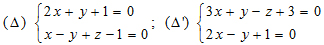 . Chứng minh rằng hai đường thẳng (∆) và (∆') cắt nhau. Viết phương trình chính tắc của cặp đường thẳng phân giác của các góc tạo bởi (∆) và (∆')