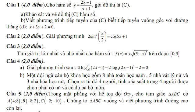 Đề thi thử đại học môn toán THPT Trần Phú với thang điểm 20