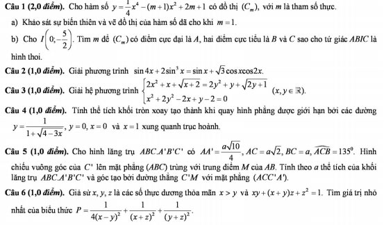 ĐỀ THI THỬ ĐẠI HỌC MÔN TOÁN TRƯỜNG CHUYÊN ĐH VINH