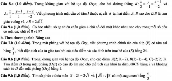 PHẦN RIÊNG (3,0 điểm) Thí sinh chỉ được làm một trong hai phần (phần a hoặc phần b)