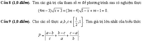 Đáp án đề thi thử THPT Quốc gia môn Toán