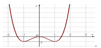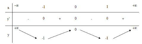 - Chiều biến thiên: y' = 4x3 - 4x; y' = 0 ↔ 4x3 - 4x = 0 ↔ x = 0; x = ±1