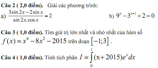 Thí sinh không được sử dụng tài liệu. Cán bộ coi thi không giải thích gì thêm.