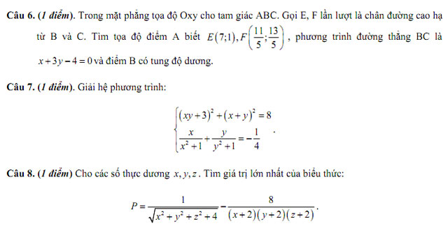 Thí sinh không được sử dụng tài liệu. Cán bộ coi thi không giải thích gì thêm.