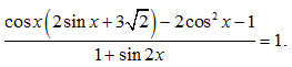 Khi đó p.trình đã cho tương đương với 2sinxcosx + 3√2 cos2x - 1 = 1 + sin2x